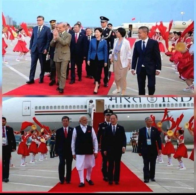 और कुछ बताना शेष रहता है क्या?1. पाकिस्तान के प्रधानमंत्री शहबाज़ शरीफ़ की चीन यात्रा के आगमन की तस्वीर है, जिनका ‘रेड-कार्पेट स्वागत’ उनकी जून 2024 की आधिकारिक चीन यात्रा पर हुआ था. 2. कल अगस्त 2025 को प्रधानमंत्री नरेंद्र मोदी चीन के तियानजिन स्थित Binhai International Airport पर SCO शिखर सम्मेलन में भाग लेने पहुँचे, जहाँ उनका रेड कार्पेट बिछाकर स्वागत किया गया. और कुछ बताना शेष रहता है क्या?0 Comments ·0 Shares ·2K Views ·0 Reviews -